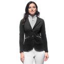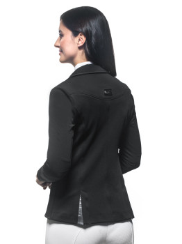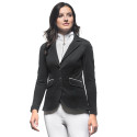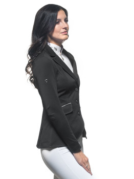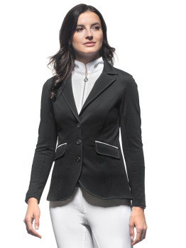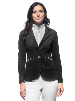 Zapinany na trzy kontrastujące guziki, ten frak konkursowy prezentuje się nie tylko wyjątkowo stylowo, ale także dodaje pewności siebie na parkurze. Czarny kolor nadaje mu uniwersalnego charakteru, który sprawdzi się w każdej dyscyplinie jeździeckiej. Elegancki i dopasowany fason slim fit podkreśli każdą kobiecą sylwetkę, zapewniając jednocześnie maksymalny komfort podczas jazdy.